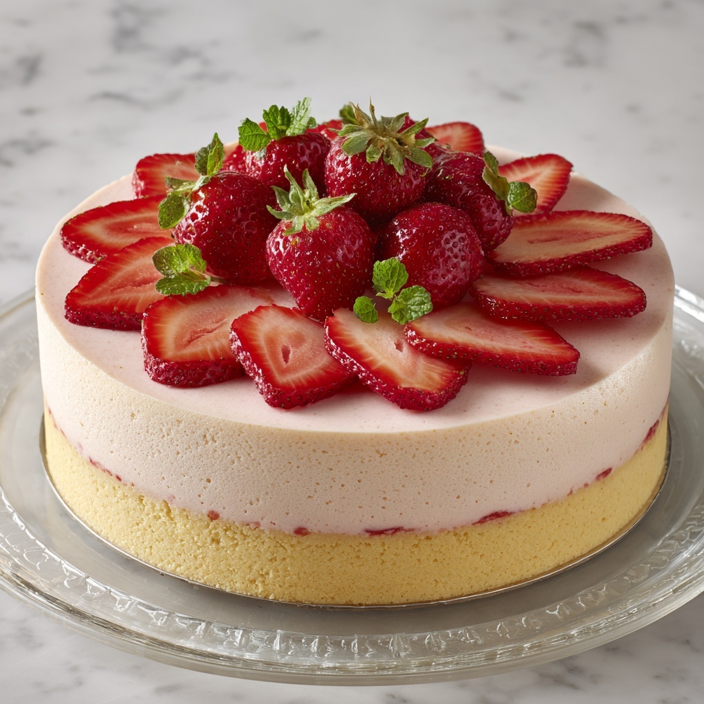 12. Decorate and serve: Optionally garnish the cheesecake with additional strawberries, mint leaves, lemon zest, or whipped cream before serving for an attractive presentation and added flavor.