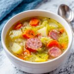 A hearty and flavorful Kielbasa and Cabbage Soup featuring smoky sausage, tender vegetables, and aromatic herbs simmered together to create a comforting Eastern European classic perfect for chilly evenings.