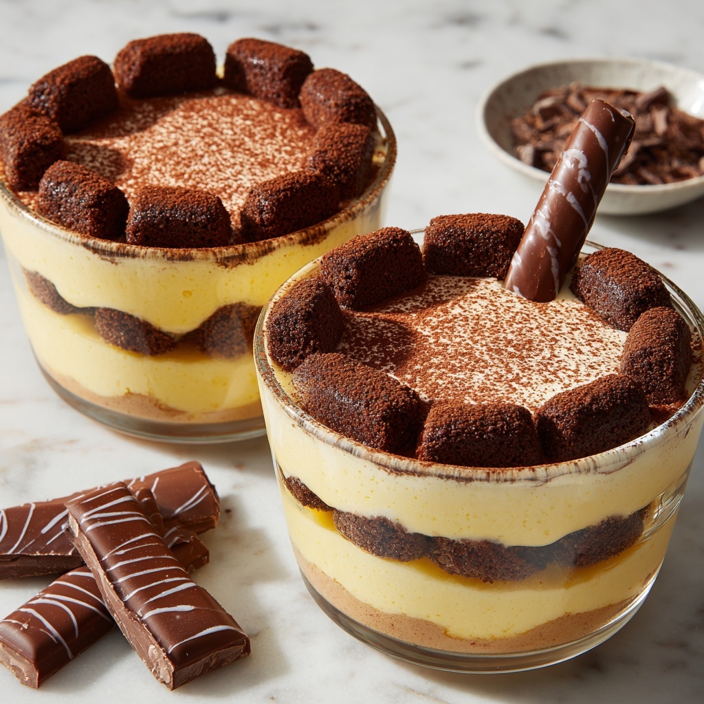 If you’d like to impress guests with an individual serving style, assemble the Kinder Bueno Tiramisu Recipe in clear glasses or mini mason jars. This not only makes portion control easy but also allows everyone to see those gorgeous layers of cream, crunchy chocolate, and coffee-soaked ladyfingers. Another fun idea is to create a tiramisu trifle in a large glass bowl for a more casual but equally stunning dessert centerpiece.