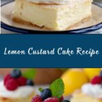 This cake pairs wonderfully with a cup of tea or a light dessert wine like Moscato. A crisp green salad with citrus vinaigrette or a fresh fruit platter makes a refreshing accompaniment that balances the richness of this luscious Lemon Custard Cake Recipe.