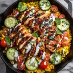 Once baked, you can slice the chicken into shawarma-style pieces and nestle them back into the casserole, making it easy for everyone to enjoy the tender meat paired with the rice and veggies in every bite. Then, generously top with the fresh cucumber and tomato mixture, completing your Lemon Herb Chicken Shawarma Casserole Recipe with a vibrant, refreshing finish.
