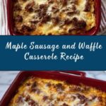 A comforting and delicious Maple Sausage and Waffle Casserole combining crispy cubes of frozen waffles with savory maple-flavored breakfast sausage, cheddar cheese, and a sweet maple-egg custard. This baked breakfast casserole is perfect for a weekend brunch or special occasion, offering a harmonious blend of sweet and savory flavors with a tender, baked texture.