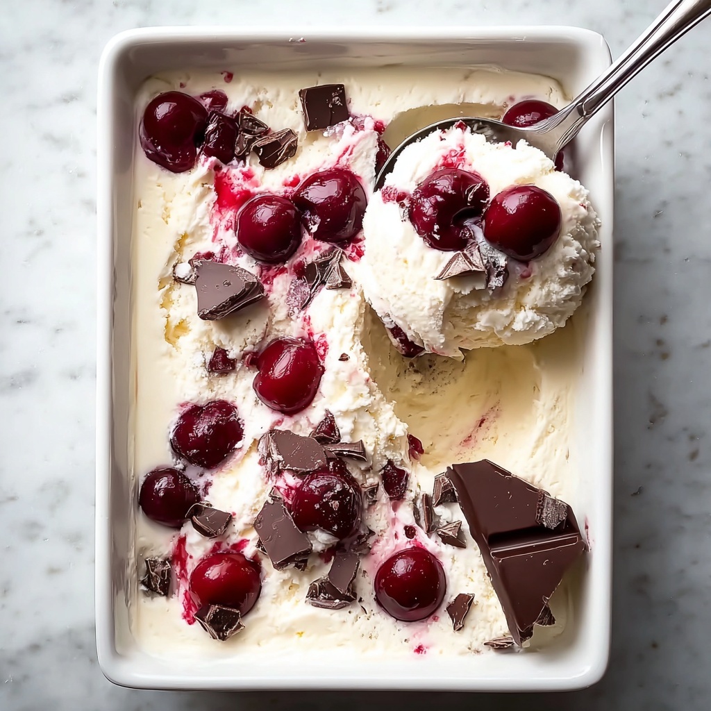This ice cream is already a star on its own, but adding a few thoughtful garnishes makes it shine even brighter. Try sprinkling finely chopped dark chocolate, whole cherries, or even a drizzle of cherry syrup for that extra wow factor and tempting look.