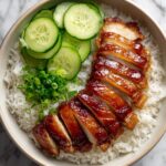 Simple garnishes really complete this dish. Thinly sliced cucumbers give a refreshing crunch that balances the rich chicken and fluffy rice. The bright green onion oil isn’t just tasty; it adds visual appeal and a sensational aroma that draws everyone in eagerly around the table.