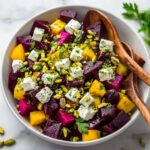 This vibrant Orange Beet Salad with Feta and Pistachios combines tender, cooked beets with zesty orange, crunchy pistachios, and creamy feta cheese. Enhanced with a tangy red wine vinaigrette and fresh cilantro, this refreshing salad is perfect as a light lunch or a colorful side dish. The optional pomegranate seeds add a burst of sweetness and an attractive garnish.