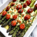 Oven Roasted Asparagus with Parmesan and Tomatoes is a vibrant and flavorful side dish that brings together tender roasted asparagus, blistered cherry tomatoes, garlic, and a sprinkle of Parmesan cheese. This quick and easy recipe is perfect for a healthy addition to any meal, finished with a touch of balsamic vinegar and fresh herbs to enhance the depth of flavor.