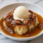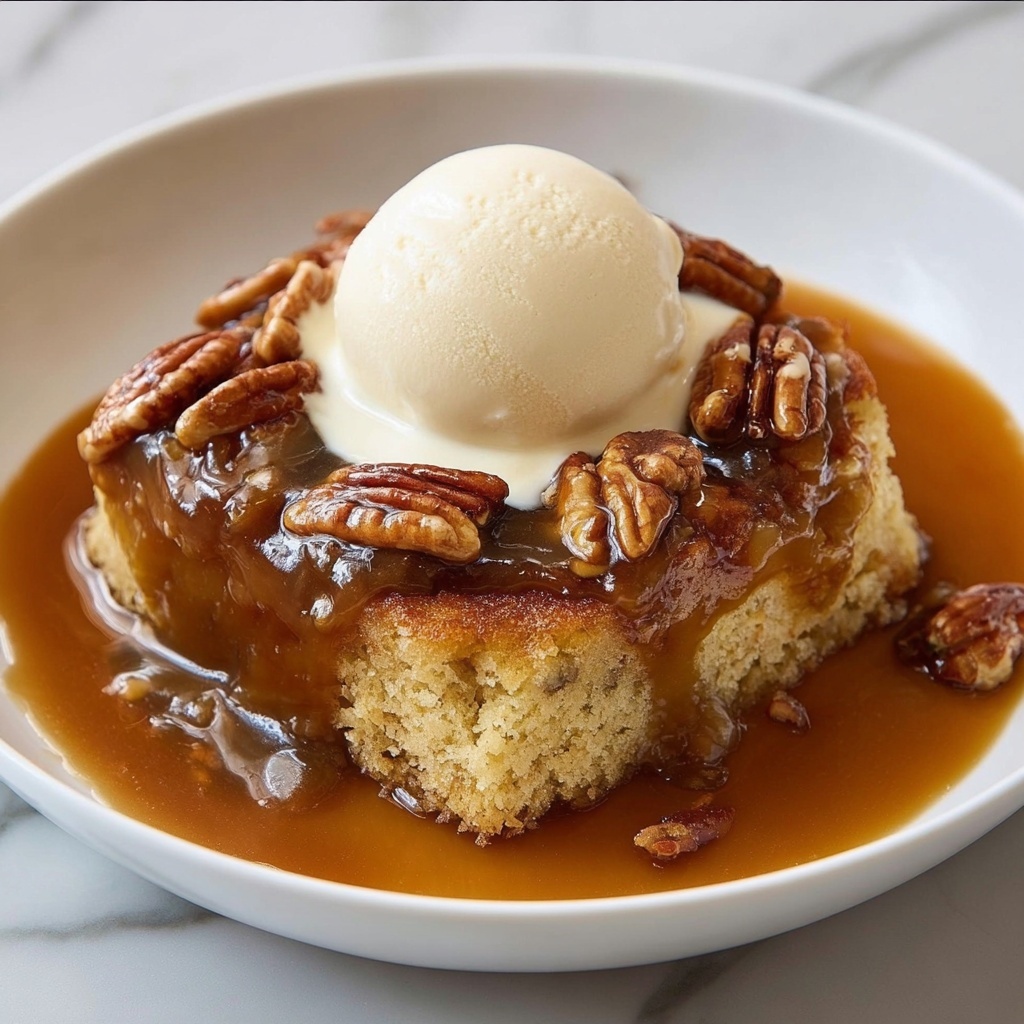 - Prepare the Topping: In a separate bowl, mix together granulated sugar, brown sugar, and chopped pecans. Spread this mixture evenly over the top of the batter in the dish.