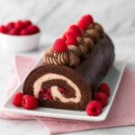For a stunning finish, melt finely chopped semi-sweet chocolate with heated heavy cream to make a silky ganache. Let it cool until thick but spreadable, then spread it over the chilled cake roll. You can decorate with extra chocolate whipped cream and fresh raspberries for added beauty and flavor. If you prefer, refrigerate the cake again until the ganache firms up. This step adds an extra layer of indulgence and polish to your Raspberry Chocolate Roll Cake Recipe that makes it truly show-stopping.