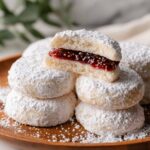 These Raspberry-Filled Almond Snow Cookies are delicate, buttery cookies filled with sweet raspberry jam and dusted with powdered sugar to create a snowy, festive look. Featuring a blend of all-purpose and almond flour along with almond extract, these cookies offer a rich nutty flavor complemented by the fruity filling, perfect for holiday celebrations or afternoon tea.
