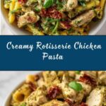 Pair this pasta with a crisp green salad tossed with a tangy vinaigrette or some crunchy garlic bread that’s perfect for soaking up any leftover sauce. Neither will overpower your Rotisserie Chicken Pasta Recipe but will complement its creamy textures perfectly.