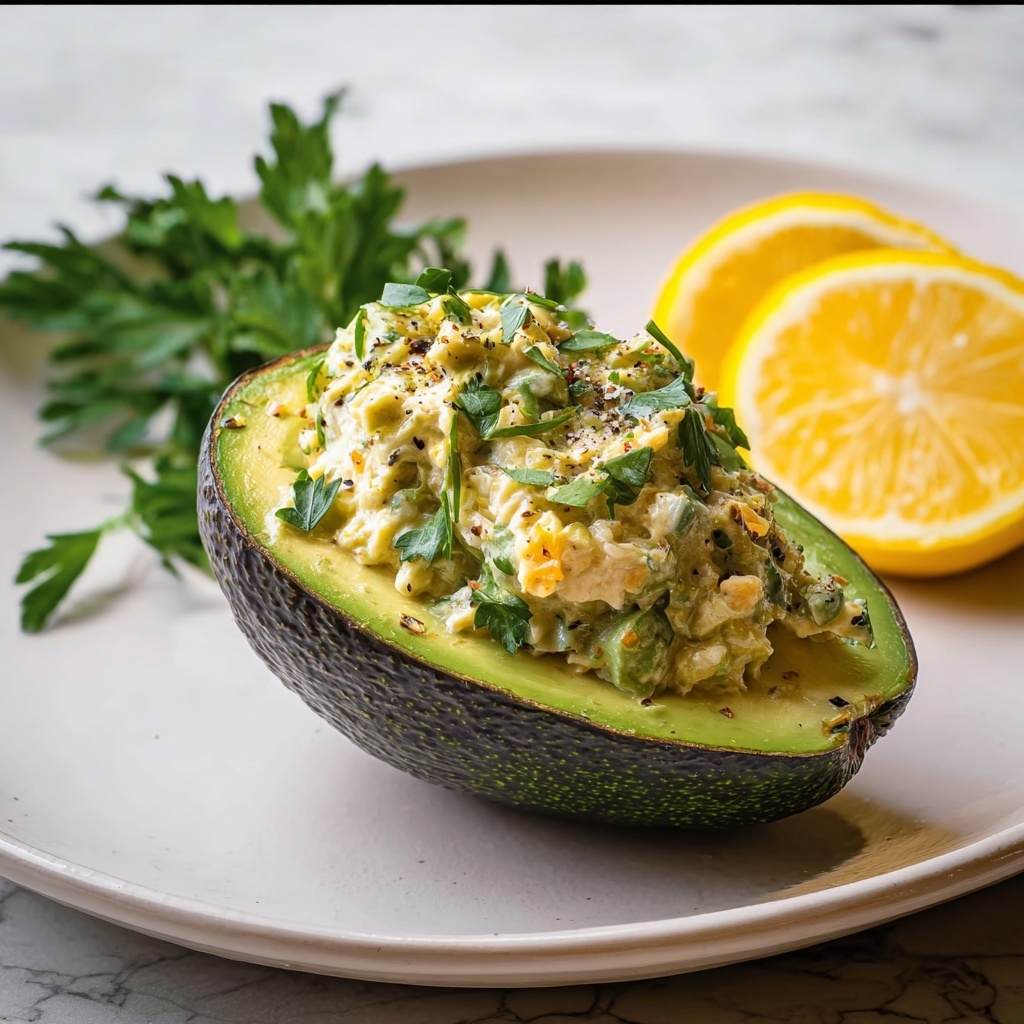 A fresh and healthy recipe featuring ripe avocados stuffed with a creamy salmon mixture seasoned with Dijon mustard, lemon juice, red onion, and herbs. Perfect as a light lunch or appetizer, this no-cook dish combines the richness of salmon with the creaminess of avocado for a satisfying, nutrient-packed meal.