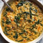 Now, it’s time to introduce the green hues and fresh herb magic. Add the chopped kale or chard, parsley, basil, mint, rosemary, and dried oregano. Simmer the soup for an additional 5 to 7 minutes so the herbs can infuse their bright, savory, and slightly floral notes throughout the broth. This step lifts the entire soup to a fragrant Mediterranean masterpiece.