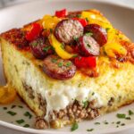 This Sausage & Hash Brown Breakfast Casserole is a hearty and comforting dish perfect for a weekend brunch or a make-ahead breakfast. It combines savory breakfast sausage, crispy hash browns, sautéed onions and peppers, and a cheesy egg mixture baked to golden perfection. Easy to prepare and packed with flavor, this casserole serves eight and makes a satisfying start to your day.