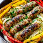 A quick and flavorful Sausage and Peppers Skillet recipe featuring spicy andouille sausage cooked with vibrant red and yellow bell peppers, onions, and garlic, seasoned with Italian herbs. Perfect for a hearty weeknight dinner served straight from the skillet or alongside bread or rice.