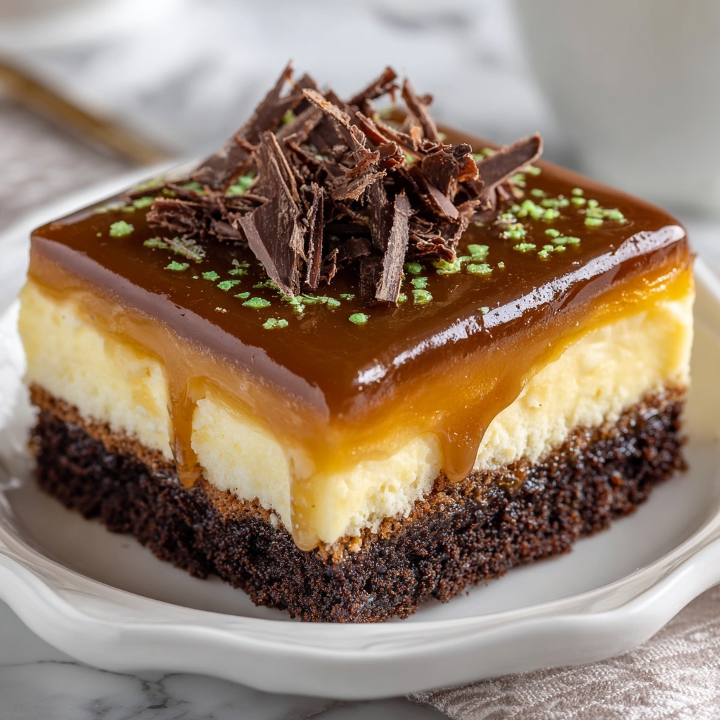 Once the cake is out of the oven and slightly cooled, poke several holes all over the surface using a fork or skewer. Pour the warm chocolate syrup evenly over the cake, allowing it to seep into every nook and cranny, which gives the cake its signature moist, rich texture.