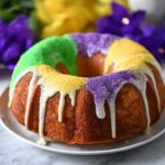 Once baked, allow the cake to cool just enough to handle, then carefully turn it out onto a serving platter. This will show off the beautiful ring shape that’s iconic to Mardi Gras celebrations.