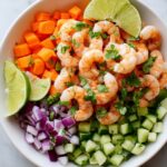 Shrimp Ceviche is a refreshing Latin American appetizer featuring raw shrimp marinated in fresh lime and lemon juice, which ‘cooks’ the shrimp without heat. Mixed with vibrant ingredients like red onion, tomatoes, jalapeño, cucumber, and cilantro, this zesty dish is served chilled, often accompanied by tortilla chips or tostadas for added crunch. Perfect for a light, healthy starter with bright citrus flavors and a hint of spice.