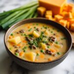 Freezing the soup is possible but with a little caution because dairy-heavy soups can sometimes change texture. If you plan to freeze portions, cool the soup completely before transferring it to freezer-safe containers. Leave some room at the top because the soup will expand slightly. Thaw overnight in the fridge before reheating gently on the stovetop or in the microwave.