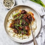 The green scallion tops and sesame seeds aren’t just for looks—they add a bright, fresh snap and a toasty crunch that contrast beautifully with the tender, saucy beef. For an extra layer of flavor, sprinkle a little more gochujang on the side to customize heat at the table.