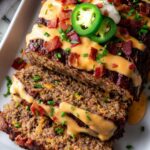 This Smoky Jalapeño Popper Meatloaf with Creamy Ranch Drizzle is a flavorful twist on classic meatloaf, combining spicy jalapeños, smoky paprika, rich cream cheese, and crispy bacon. Perfectly baked to juicy perfection, it’s topped with a cool, creamy ranch drizzle that balances the heat for a deliciously comforting meal.