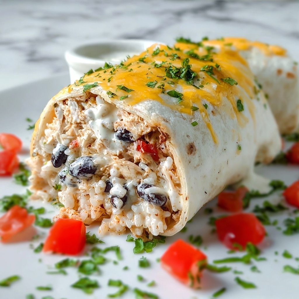 Smothered Baked Chicken Burritos combine tender shredded chicken, seasoned rice, black beans, and melted cheese wrapped in warm flour tortillas, all baked in a creamy enchilada sauce topping. This hearty and flavorful dish is perfect for a family dinner or casual gathering, offering comforting Tex-Mex flavors in every bite.