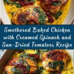 This Smothered Baked Chicken with Creamed Spinach and Sun-Dried Tomatoes is a deliciously creamy and savory dish featuring tender baked chicken breasts topped with a rich sauce made from sun-dried tomatoes, fresh spinach, and Parmesan cheese. Perfect for a comforting weeknight dinner, this recipe combines simple ingredients to create a flavorful meal that’s both satisfying and elegant.