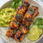 These Spicy Chipotle Honey Salmon Bowls feature perfectly grilled salmon fillets glazed with a smoky, sweet chipotle honey sauce, served over a bed of rice or quinoa and topped with fresh avocado, cucumber, cherry tomatoes, and red onion. This balanced, flavorful dish is quick to prepare and perfect for a nutritious weeknight dinner.