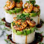 This Spicy Shrimp Sushi Stacks recipe features layers of perfectly cooked sushi rice, tender shrimp coated in a zesty spicy sauce, creamy avocado, and crisp cucumber. Served in elegant individual stacks, this dish is a vibrant fusion of fresh textures and bold flavors that’s perfect for a gourmet appetizer or light meal.