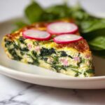 This frittata pairs wonderfully with light, fresh sides such as a crisp spring salad with radishes and snap peas or roasted new potatoes tossed in herbs. It also shines alongside crusty sourdough bread or a fruit salad, making it a complete meal full of textures and contrasting flavors without overwhelming the fresh, herb-forward dish.