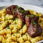 Steak Bites with Cheesy Garlic Parmesan Rotini Recipe