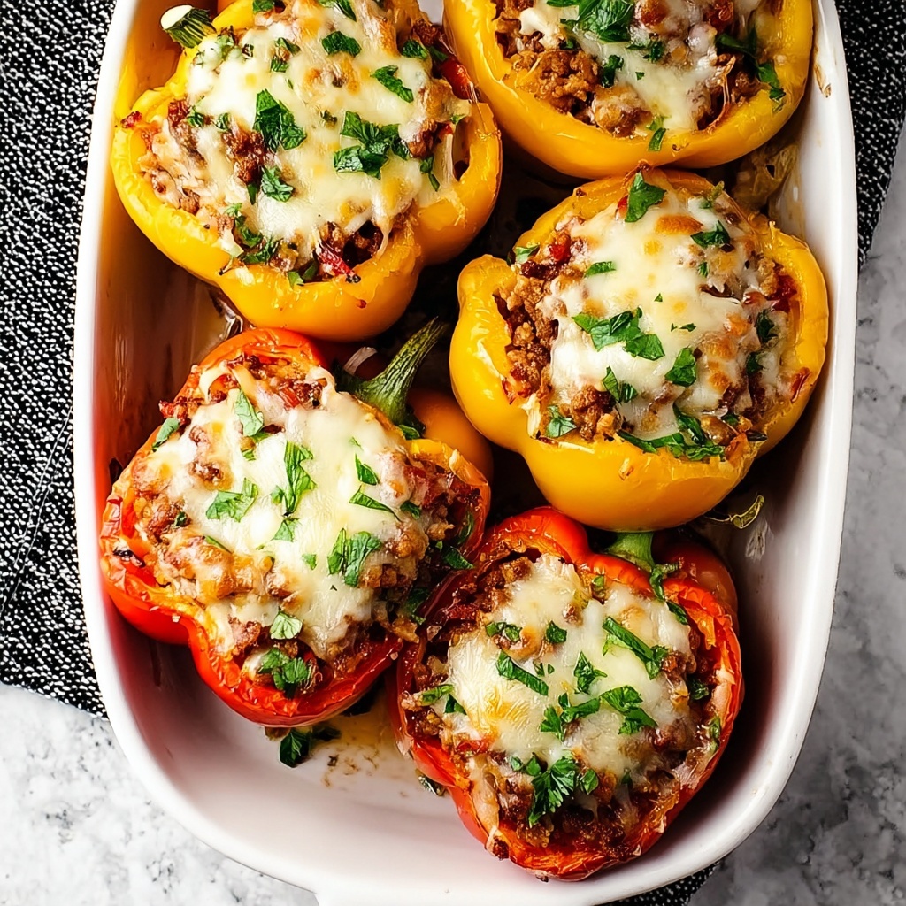 Spoon the filling generously into each prepared pepper, pressing down lightly to pack them well. Top each one with extra shredded cheese for that irresistible golden melt. Cover the baking dish with foil and bake in your preheated oven for 30 minutes, then remove the foil and bake for another 10 to 15 minutes. You’ll know they’re done when the cheese is bubbly and the peppers have softened perfectly without becoming mushy.