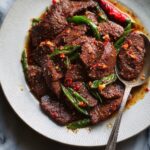 5. Serve immediately: Remove the wok from heat and serve the hot and spicy beef immediately, ideally accompanied by steamed jasmine rice for an authentic Thai meal experience.