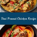This flavorful Thai Peanut Chicken recipe features tender chicken breast simmered in a rich and creamy peanut sauce infused with garlic, ginger, and sweet chili flavors. Finished with fresh cilantro and crunchy roasted peanuts, it’s a perfect dish to serve over steamed rice for a satisfying and aromatic meal.