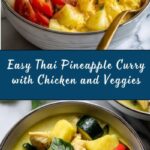 A vibrant and flavorful Thai Pineapple Curry combining rich red curry paste, creamy coconut milk, tender chicken, and a mix of fresh vegetables and pineapple. This quick and easy curry is perfect for weeknight dinners and can be customized with tofu or shrimp for a vegetarian or pescatarian option. Served over jasmine rice, it delivers a perfect balance of sweet, savory, and tangy flavors.