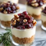 Once toasted, remove the crostini from the oven and give them a moment to cool just slightly. Then, start the fun part: topping each slice with a generous dollop of cranberry sauce, a crumble of cranberry Stilton cheese, and a handful of roughly chopped candied pecans. Each bite becomes a perfectly balanced blend of sweet, tangy, nutty, and creamy flavors.