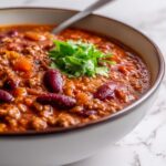 Chili is a dish meant to be personalized. Top your bowl with shredded cheese for gooey richness, dollops of sour cream to cool the heat, or sliced green onions for a fresh crunch. You can also sprinkle chopped cilantro or add pickled jalapeños to introduce zesty brightness.