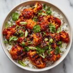 - Serve: Serve the bang bang cauliflower hot, optionally garnished with chopped green onions or cilantro for a fresh herbal note.