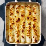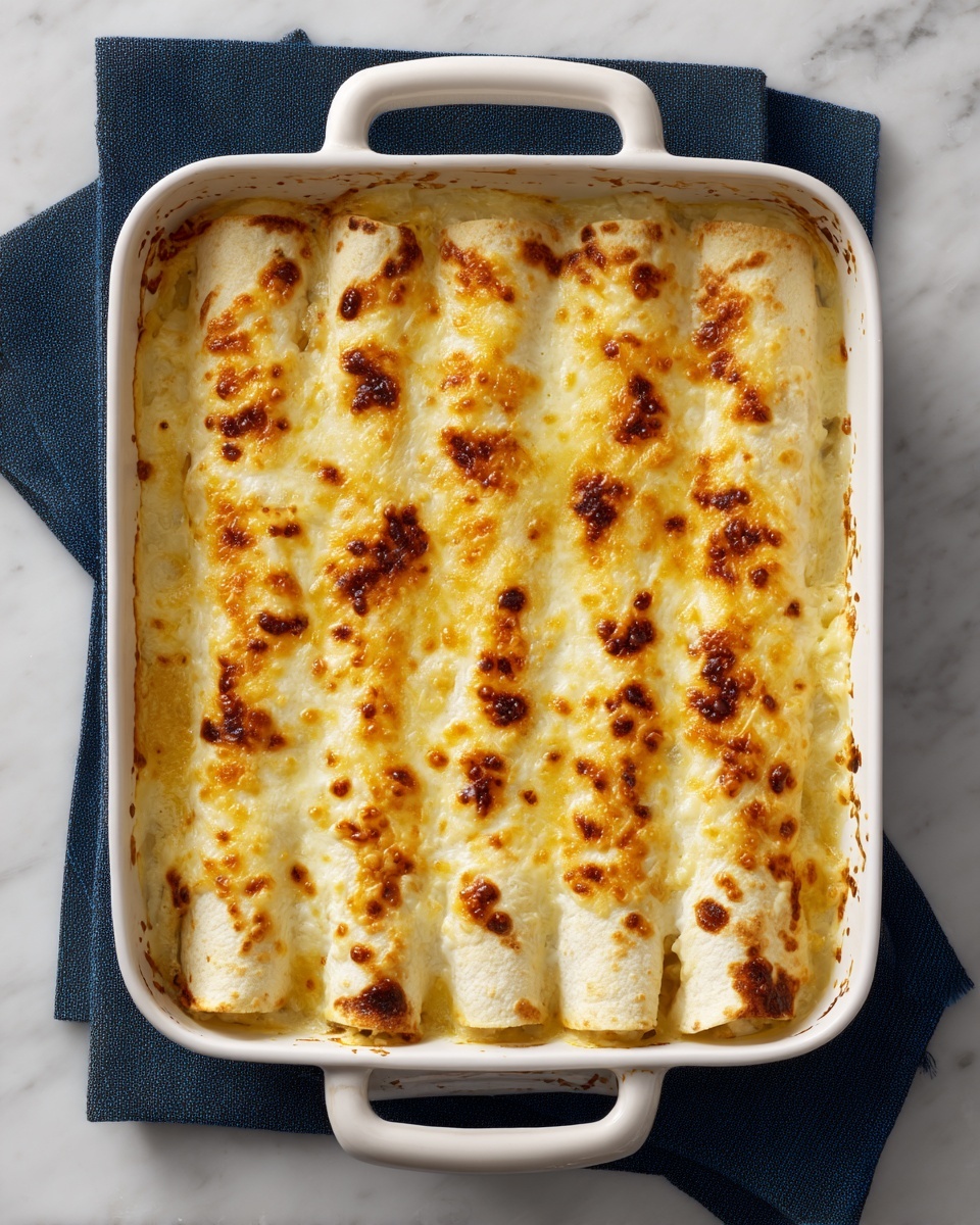 These White Chicken Enchiladas are a creamy and comforting twist on the classic Mexican dish, featuring shredded chicken wrapped in soft flour tortillas, smothered in a rich white sauce made from chicken broth, sour cream, and spices, then baked until bubbly and golden. Perfect for a family dinner or entertaining guests.