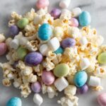 A festive and easy-to-make White Chocolate Easter Popcorn recipe that combines crunchy popcorn with mini marshmallows, sweet white chocolate, colorful sprinkles, and candy-coated chocolate eggs. Perfect for Easter celebrations or as a fun snack treat.